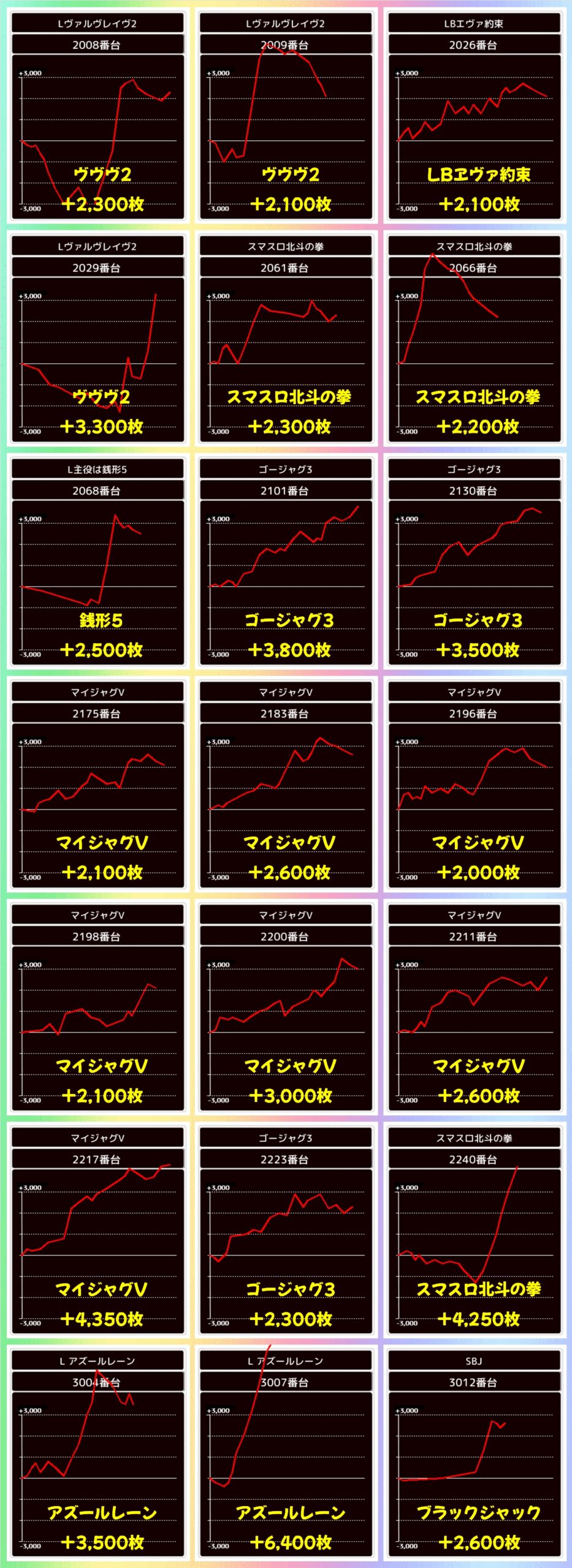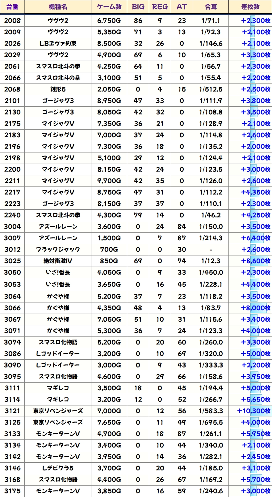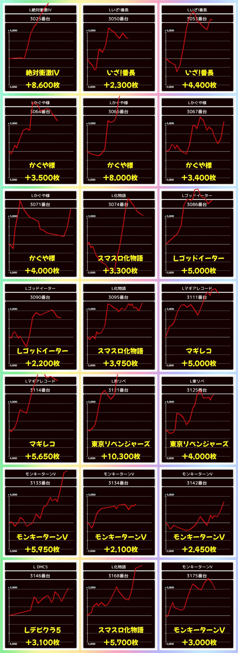 万枚オーバーが3台出ており、+18150枚のコンプリート級の出玉も飛び出していました。この出玉を見ると、今回も極めて最高の仕掛けだった可能性が高そうですね。