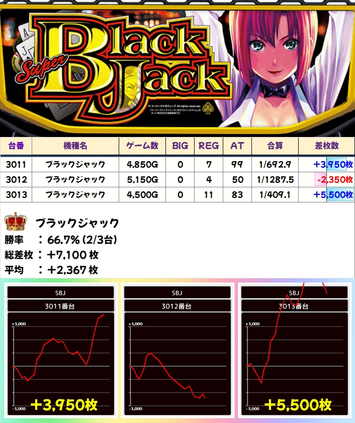 【1/2系濃厚】ブラックジャック(2/3台+)→平均+2,367枚
