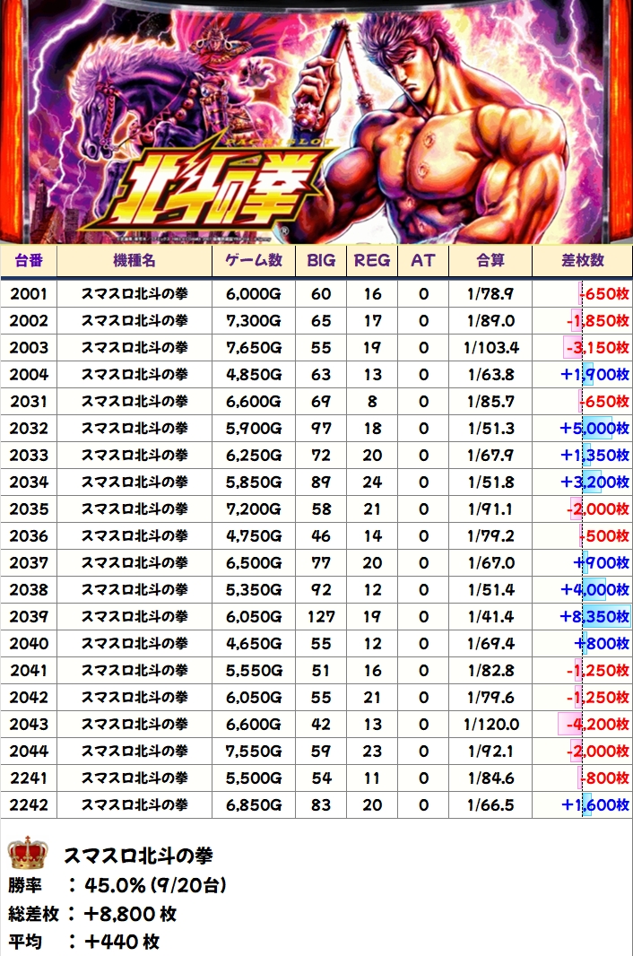 【1/2系濃厚】スマスロ北斗の拳(9/20台+)→平均+440枚