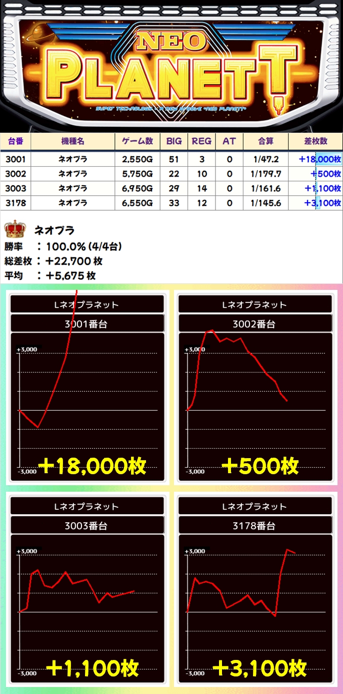 【全台系濃厚】ネオプラ(4/4台+)→平均+5,675枚