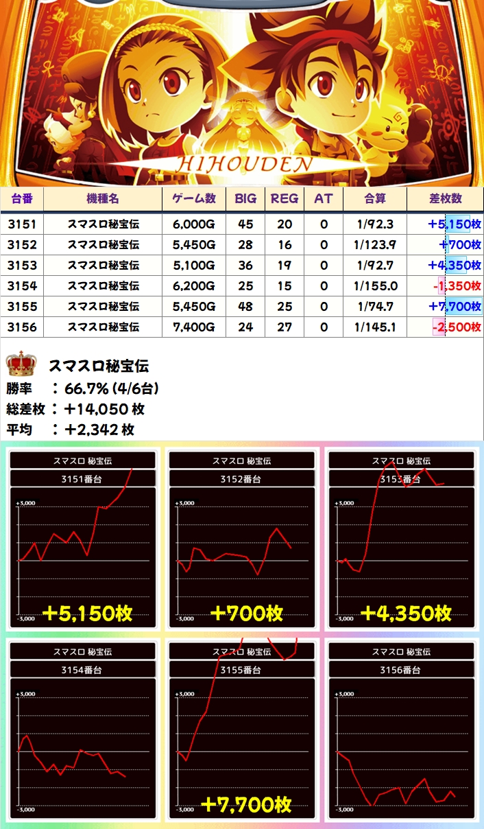 【全台系濃厚】スマスロ秘宝伝(4/6台+)→平均+2,342枚