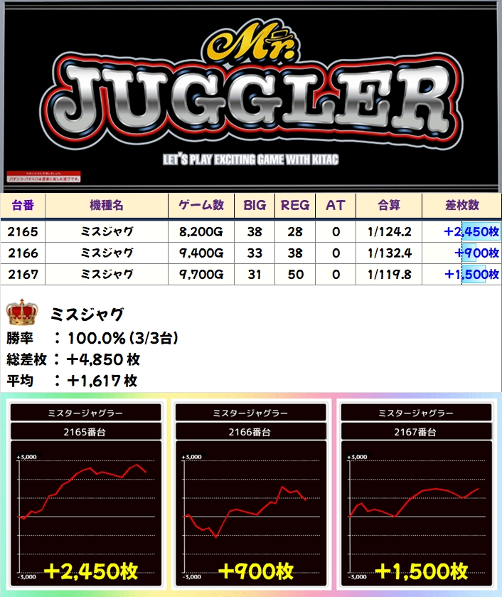 【全台系濃厚】ミスジャグ(3/3台+)→平均+1,617枚