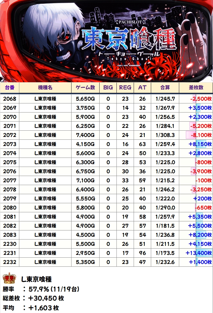 【1/2系濃厚】L東京喰種(11/19台+)→平均+1,603枚