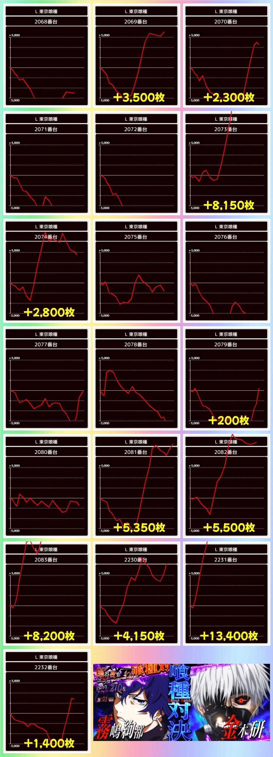 【2台並び】L東京喰種(2073-2074番台)→平均5,475枚(2/2台+)