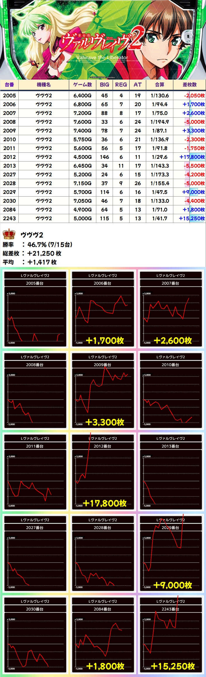 【1/2系濃厚】ヴヴヴ2(7/15台+)→平均+1,417枚