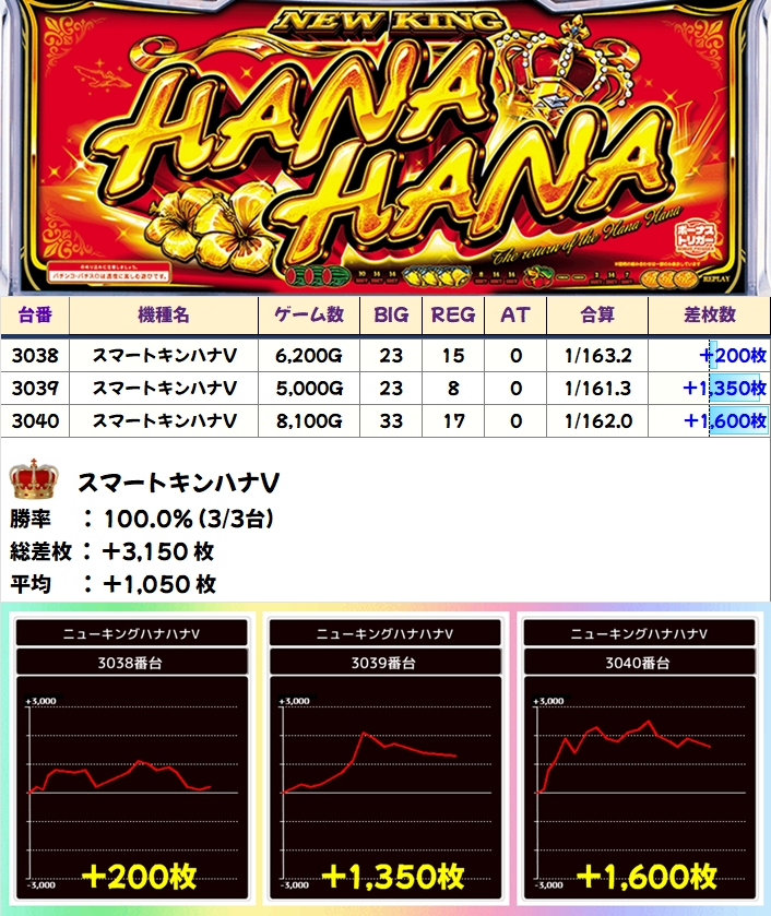 【1/2系濃厚】スマートキンハナV(3/3台+)→平均+1,050枚