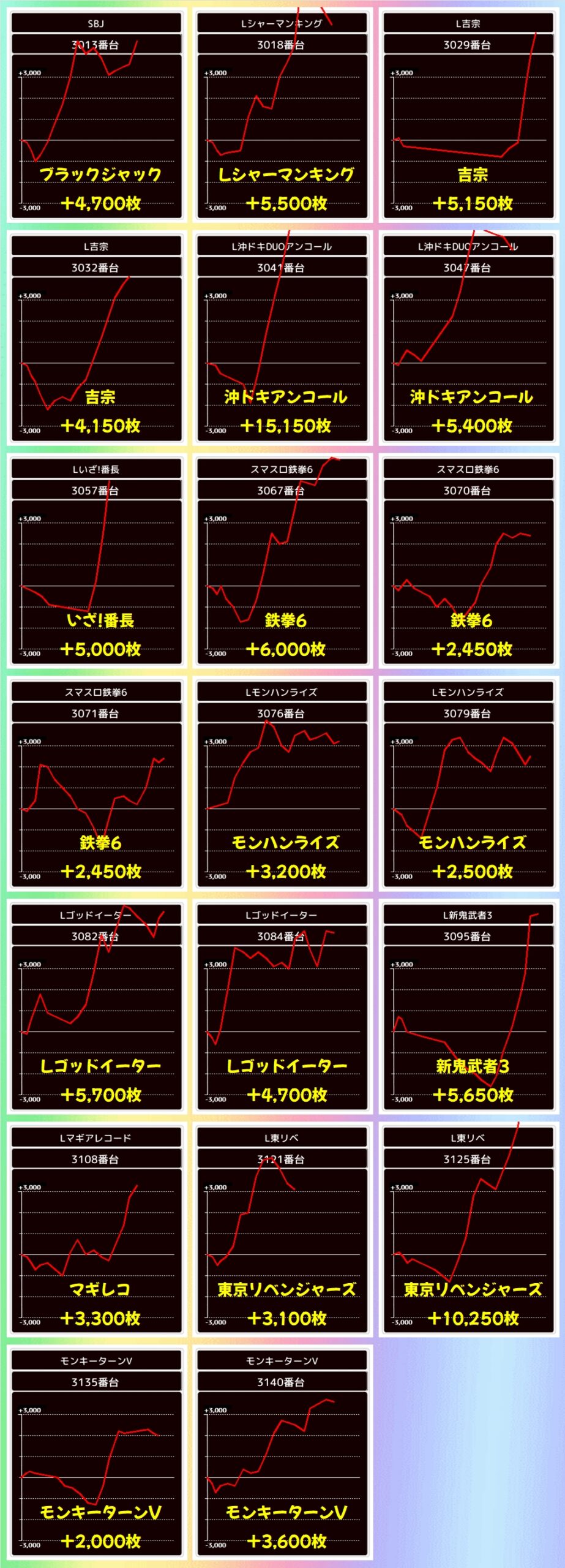 さらに、人気機種の化物語に加えてかぐや様も1/2系濃厚の結果で、今回は幅広い機種が仕掛けの対象となっていました。