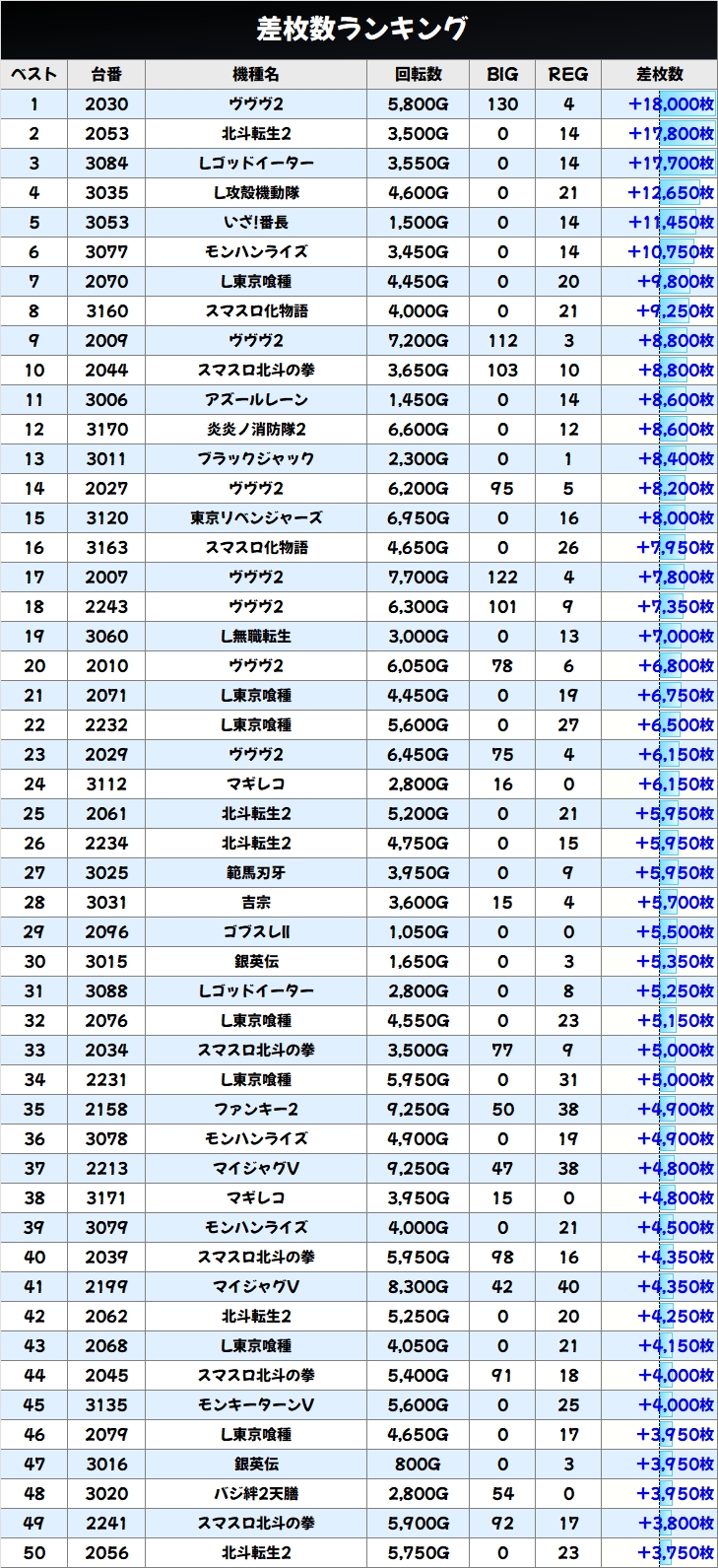 差枚数ランキング&島図チェック