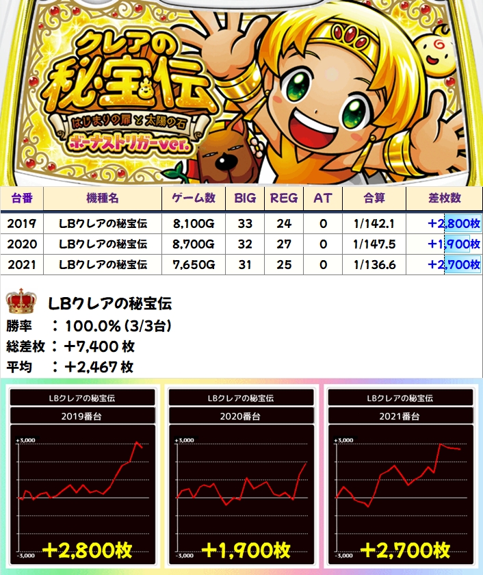 【全台系濃厚】LBクレアの秘宝伝(3/3台+)→平均+2,467枚