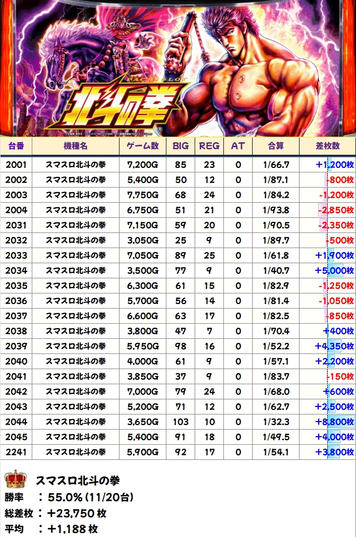 【高配分】北斗転生2(11/30台+)→平均+325枚