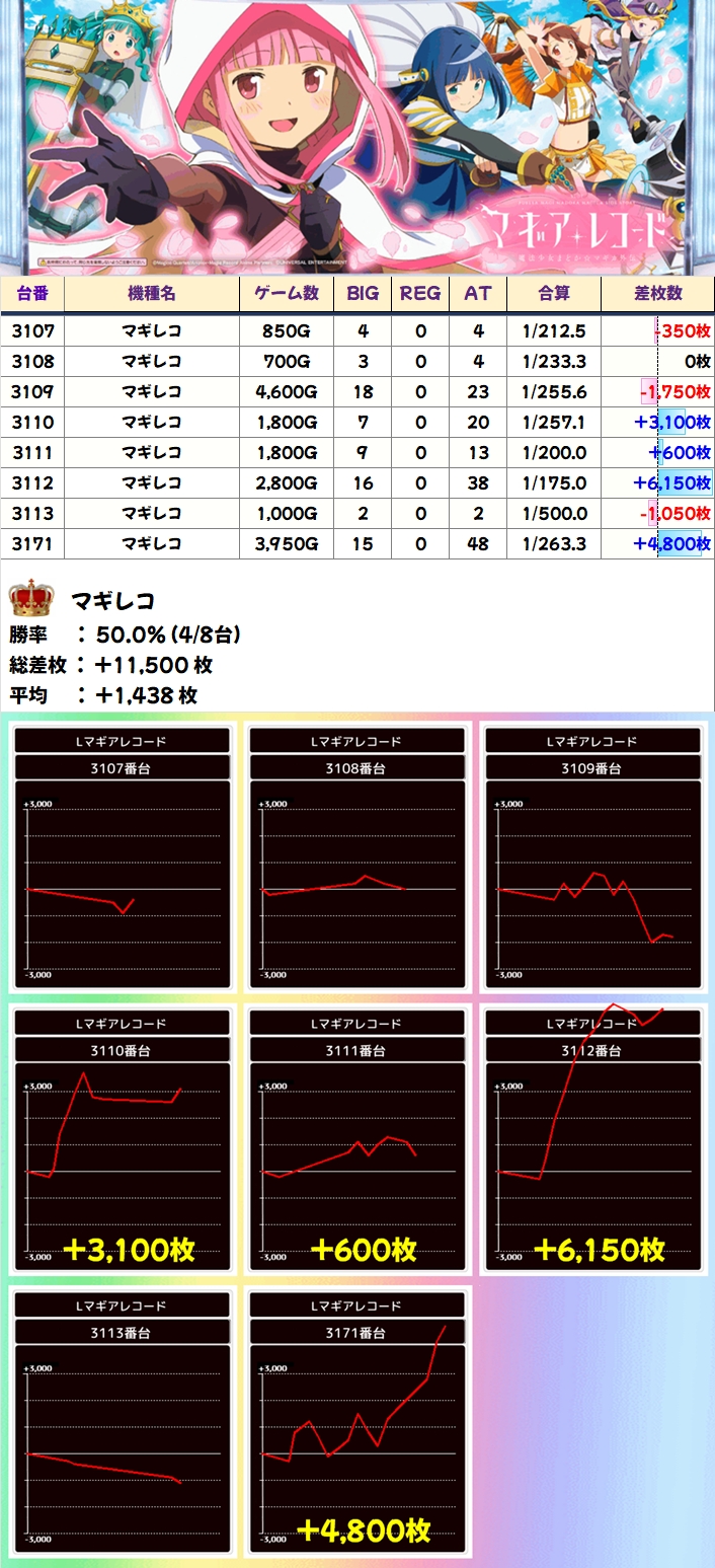 【1/2系濃厚】マギレコ(4/8台+)→平均+1,438枚