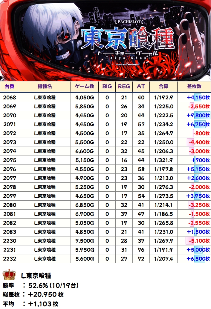 【1/2系濃厚】L東京喰種(10/19台+)→平均+1,103枚