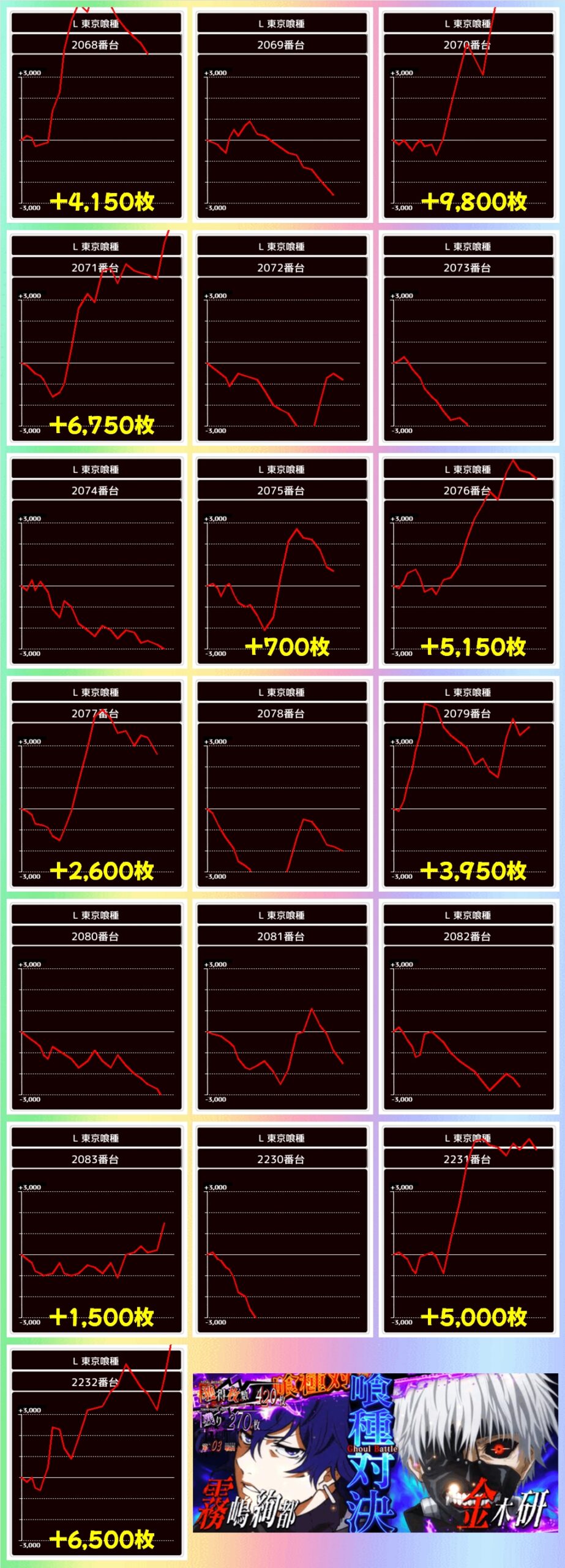 【2台並び】L東京喰種(2070〜2071番台)→平均+8,275枚(2/2台+)