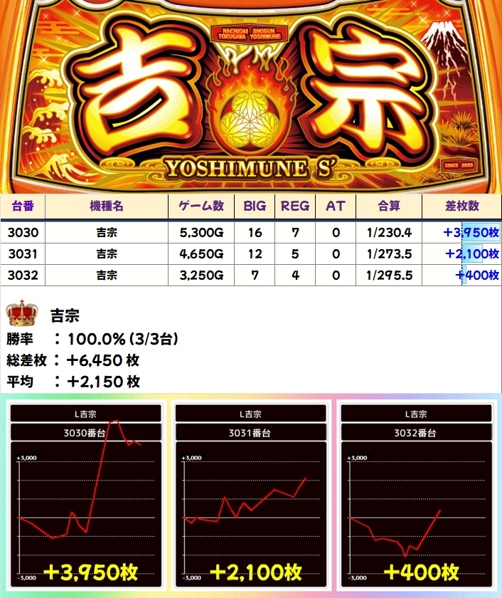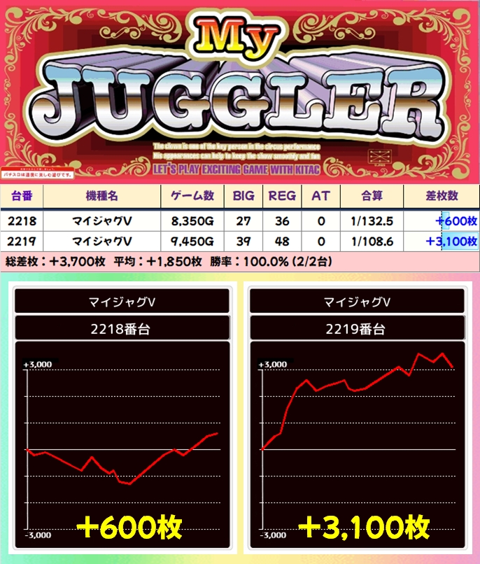 平均+200枚弱と今回も優秀な結果を残してくれました!