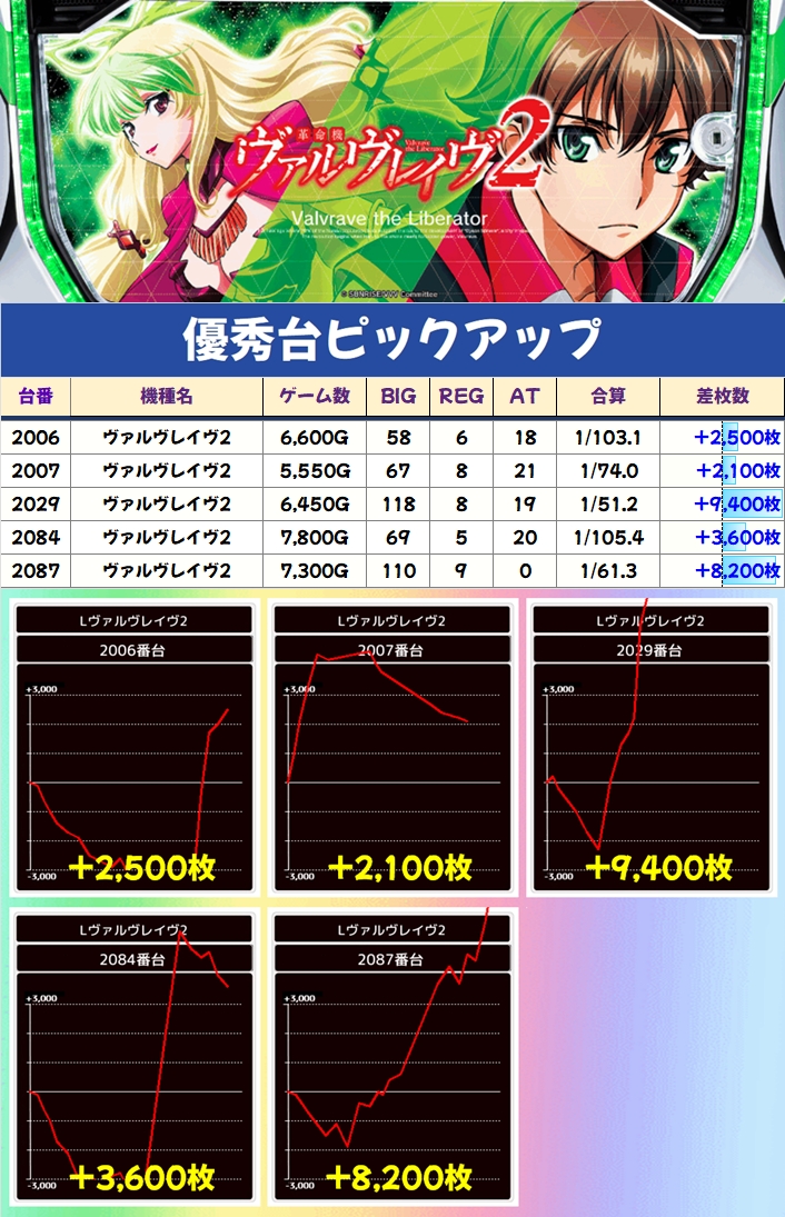 【2台並び】ヴァルヴレイヴ2(2006〜2007番台)→平均+2,300枚(2/2台+)