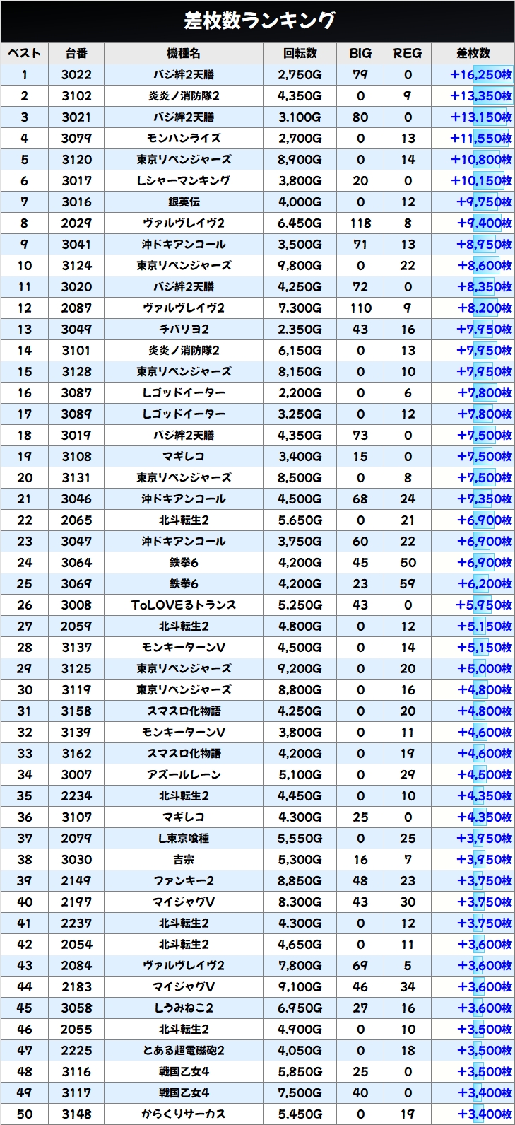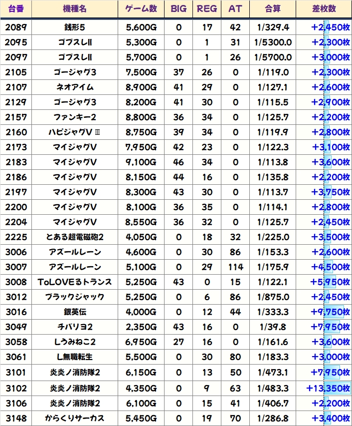 差枚数ランキング&島図チェック