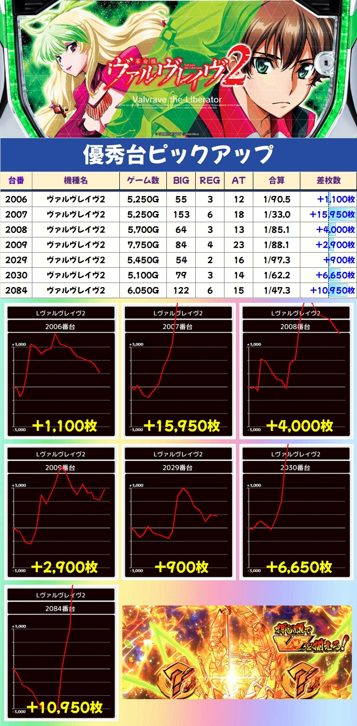 【2台並び】ヴァルヴレイヴ2(2007台番〜2008台番)→平均+9,975枚(2/2台+)