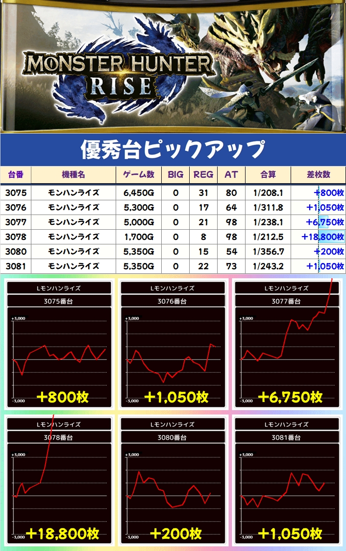 【1/2系濃厚】モンハンライズ(6/9台+)→平均+2,172枚