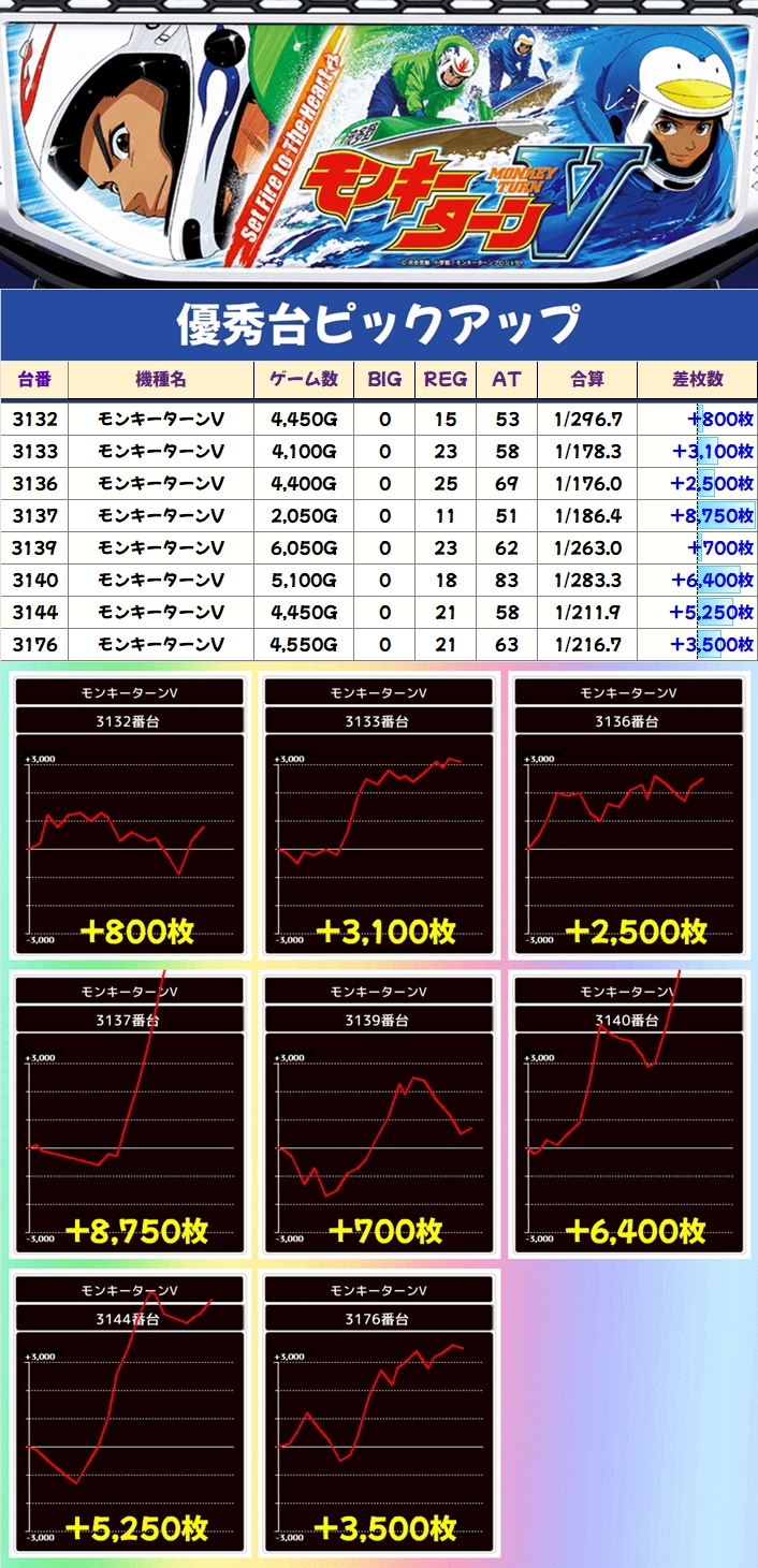 【1/2系濃厚】モンキーターンV(9/19台+)→平均+687枚
