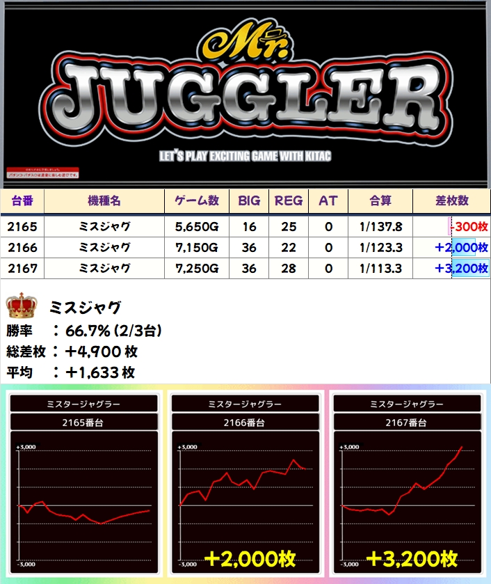 【全台系濃厚】ミスジャグ(2/3台+)→平均+1,633枚