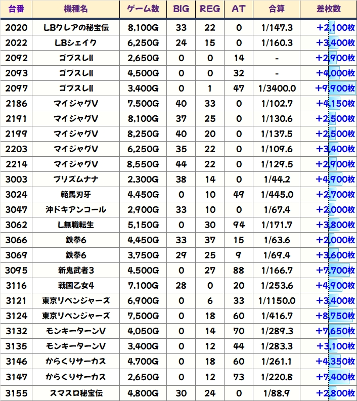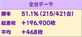 総差枚+19.6万枚、平均+468枚と超優秀な結果を残してくれました!