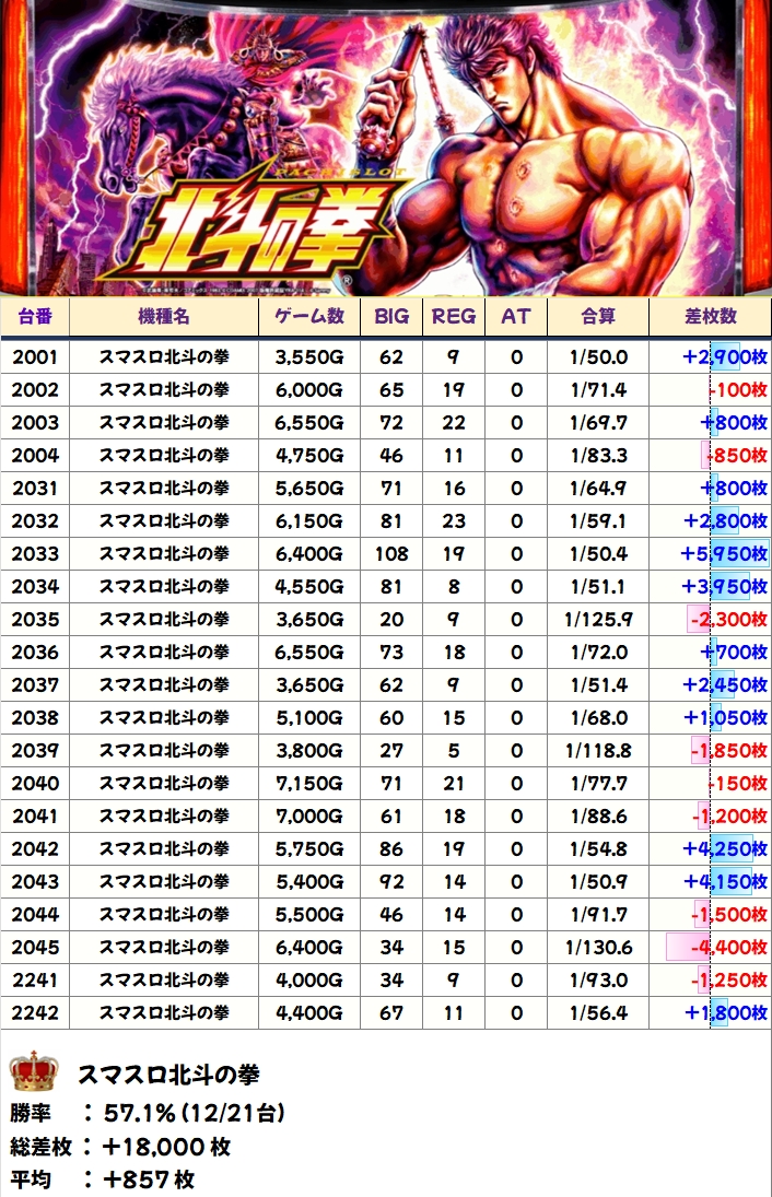 【1/2系濃厚】スマスロ北斗の拳(12/21台+)→平均+857枚