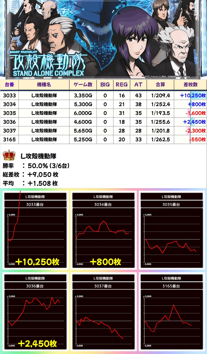 【1/2系濃厚】L攻殻機動隊(3/6台+)→平均+1,508枚
