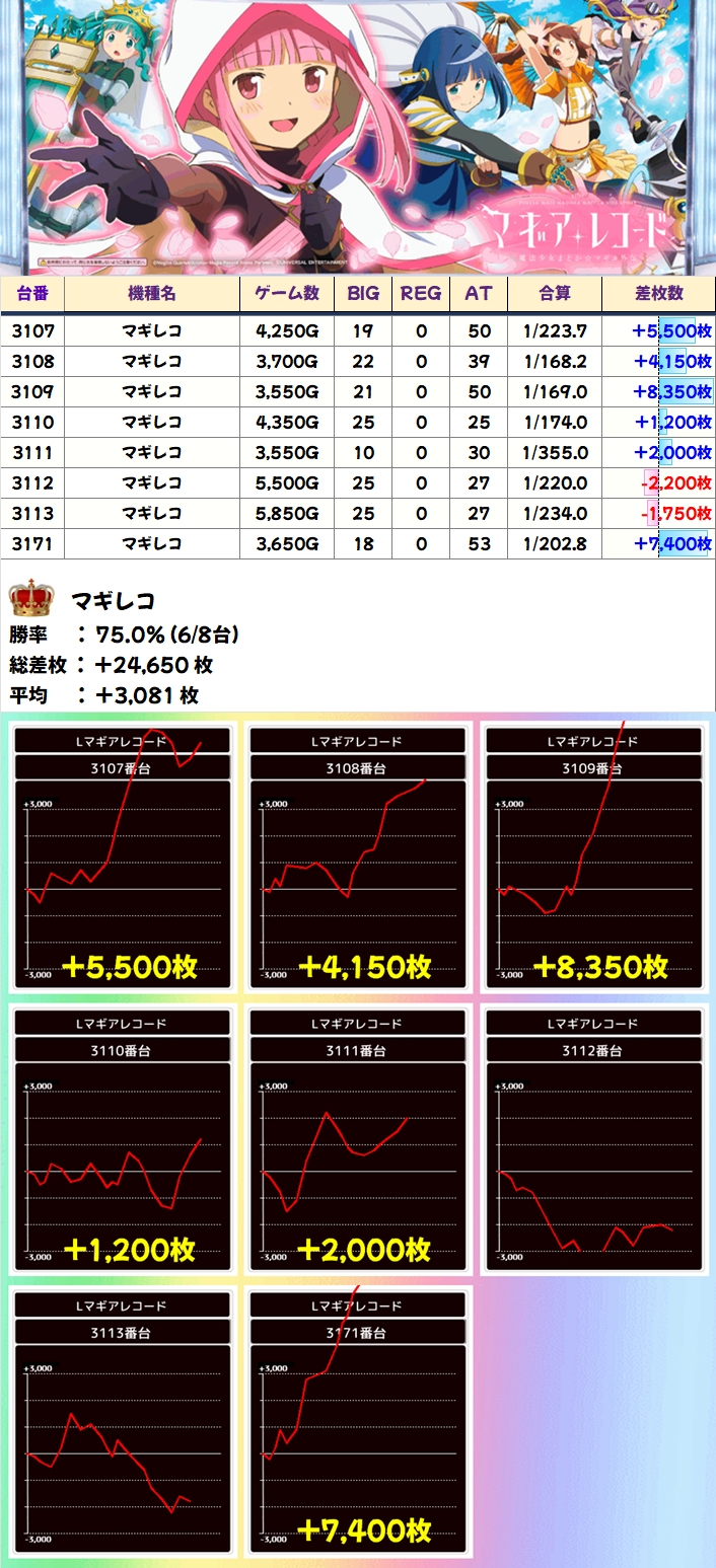 【全台系濃厚】マギレコ(6/8台+)→平均+3,081枚