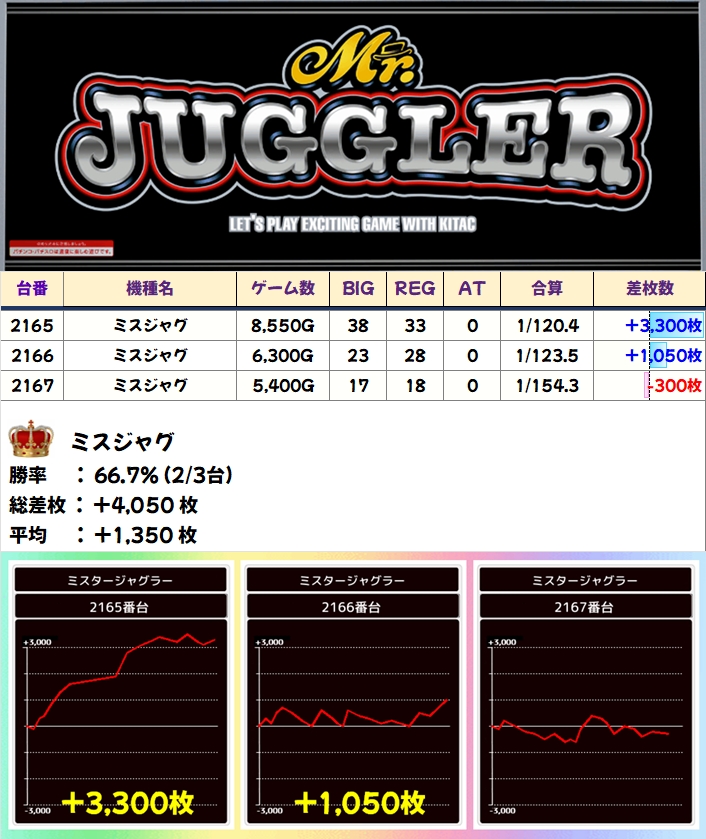 【全台系濃厚】ミスジャグ(2/3台+)→平均+1,350枚