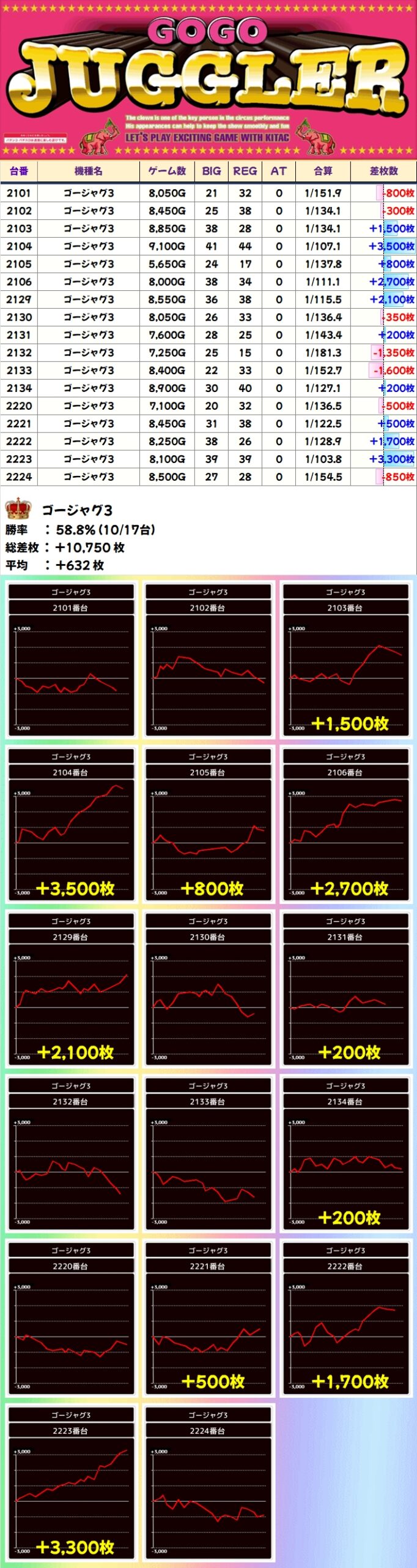 【全台系濃厚】ゴージャグ3(10/17台+)→平均+632枚