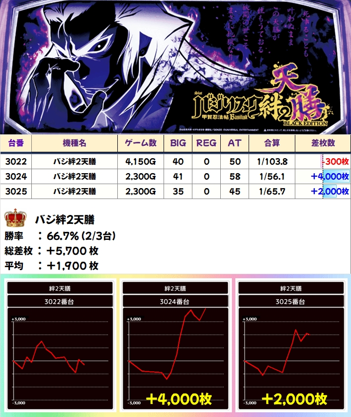 【1/2系濃厚】バジ絆2天膳(2/3台+)→平均+1,900枚
