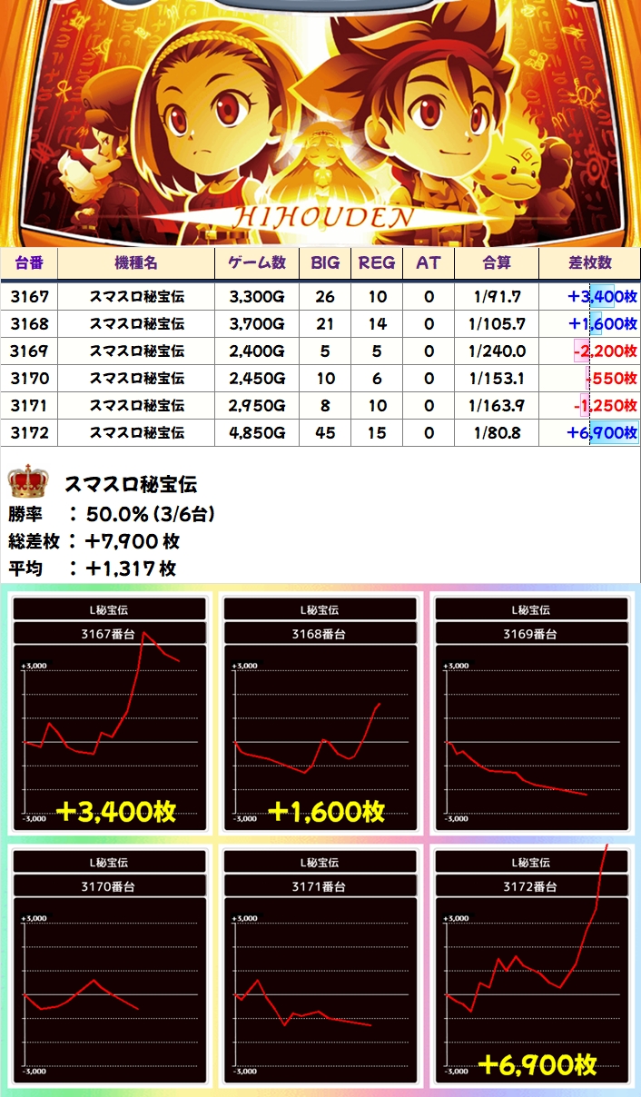 【1/2系濃厚】スマスロ秘宝伝(3/6台+)→平均+1,317枚