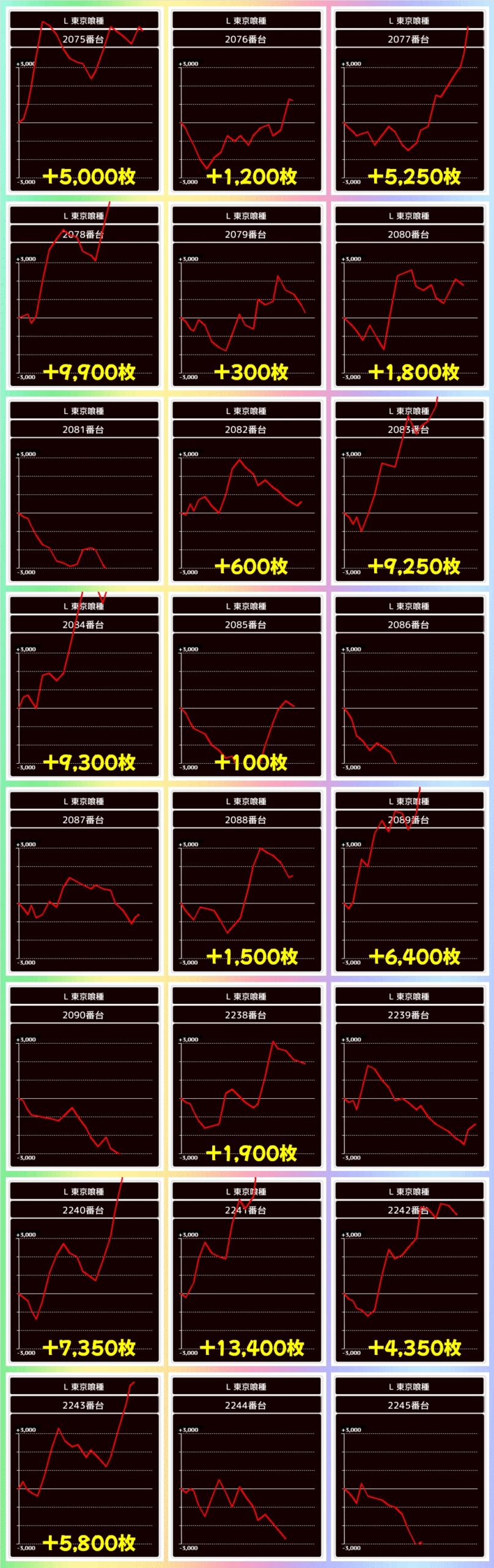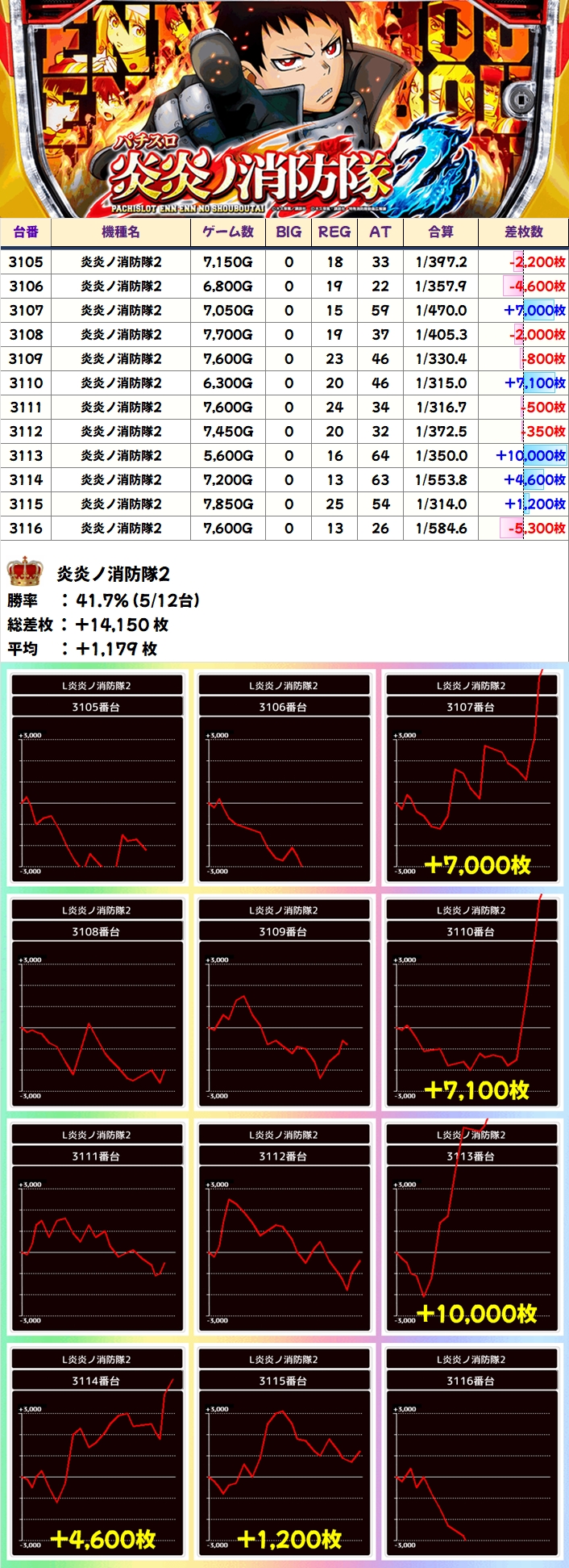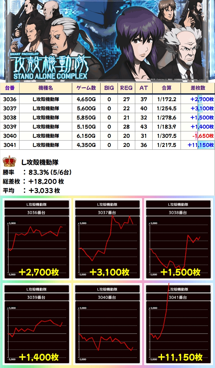 今回はななこポストで示唆を確認できた攻殻機動隊が全台系濃厚となっており、平均+3000枚overと素晴らしい結果を記録!