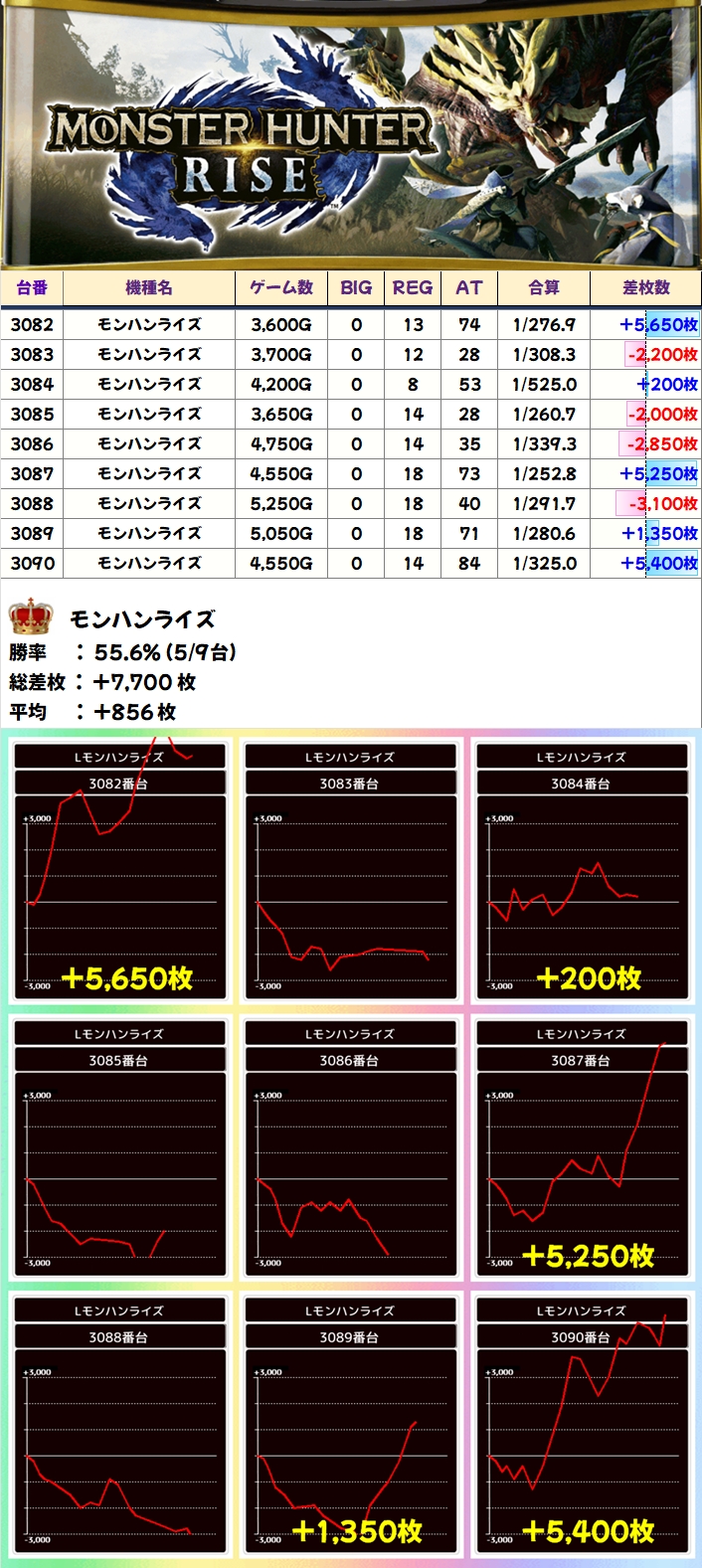 【1/2系濃厚】モンハンライズ(5/9台+)→平均+856枚