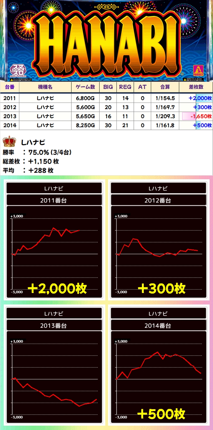 【1/2系濃厚】Lハナビ(3/4台+)→平均+288枚