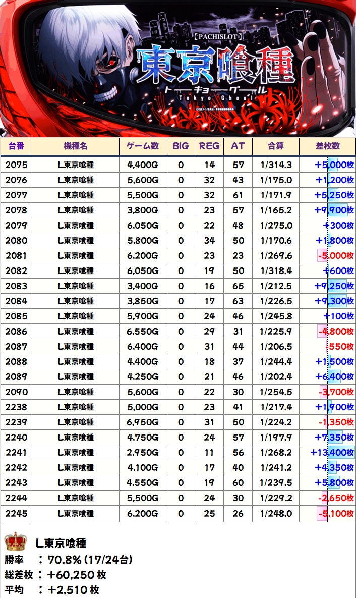 【全台系濃厚】L東京喰種(17/24台+)→平均+2,510枚