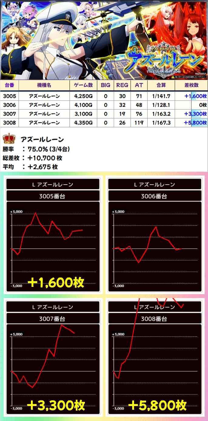 【全台系濃厚】アズールレーン(3/4台+)→平均+2,675枚