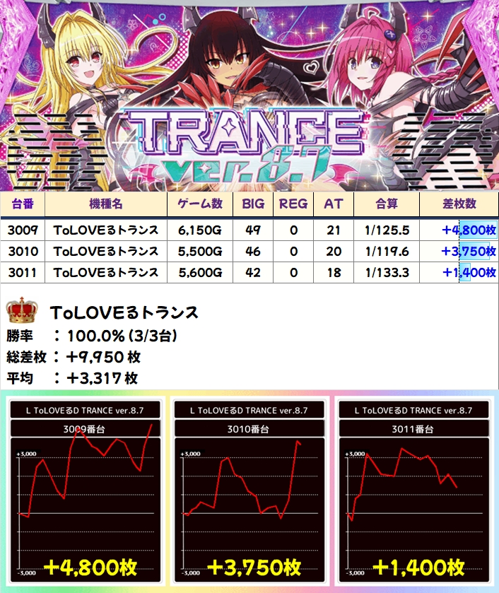 【全台系濃厚】ToLOVEるトランス(3/3台+)→平均+3,317枚