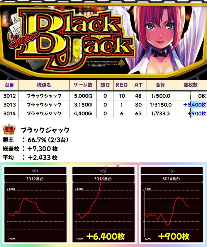 【全台系濃厚】ブラックジャック(2/3台+)→平均+2,433枚