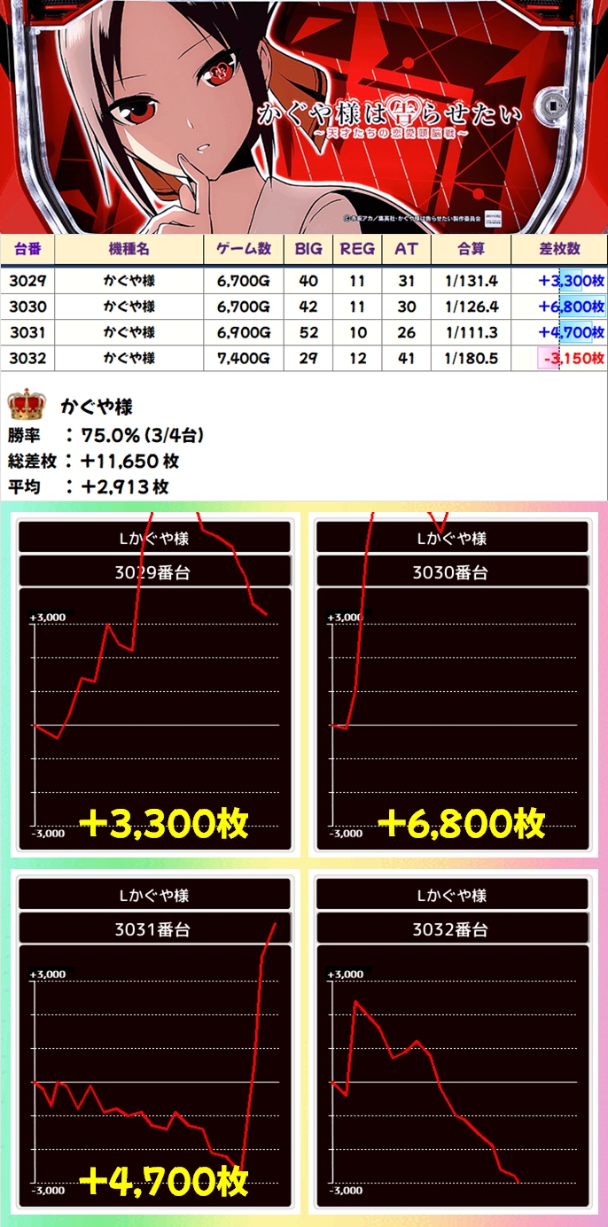 【全台系濃厚】かぐや様(3/4台+)→平均+2,913枚