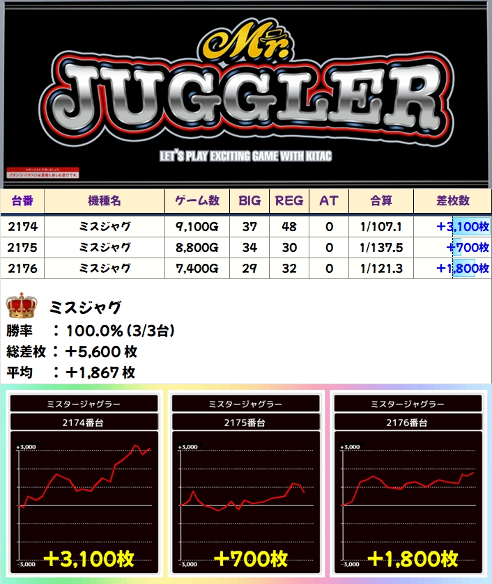 【全台系濃厚】ミスジャグ(3/3台+)→平均+1,867枚