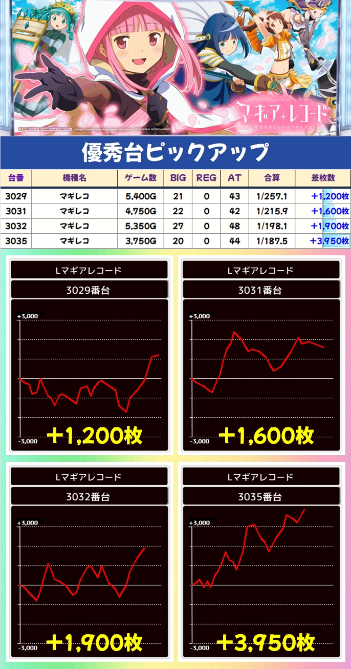 マギレコ(4/7台+)→平均+650枚