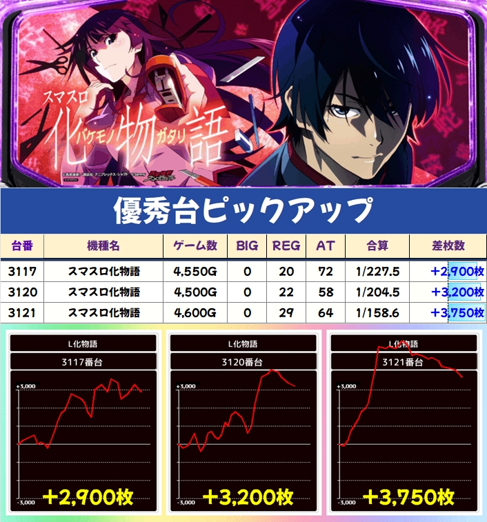 スマスロ化物語(3/8台+)→平均+475枚