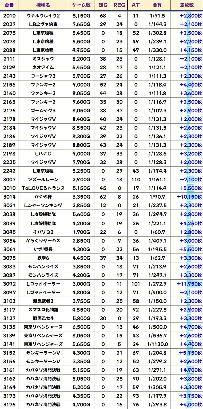 特に目立つのがワースト10の結果で、10台中9台がプラス差枚を記録と、まさしく「上げ」を認識できる結果に!