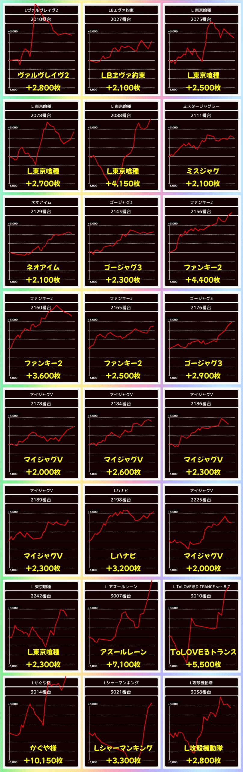 その他の機種からも大量出玉を確認でき、かぐや様とゴッドイーターからは万枚オーバー台が出現していましたよ!