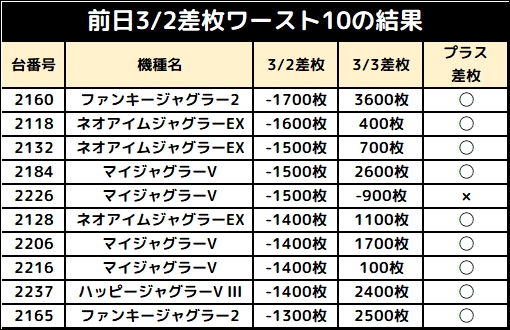 【前日差枚ワースト10が当日好調に?】