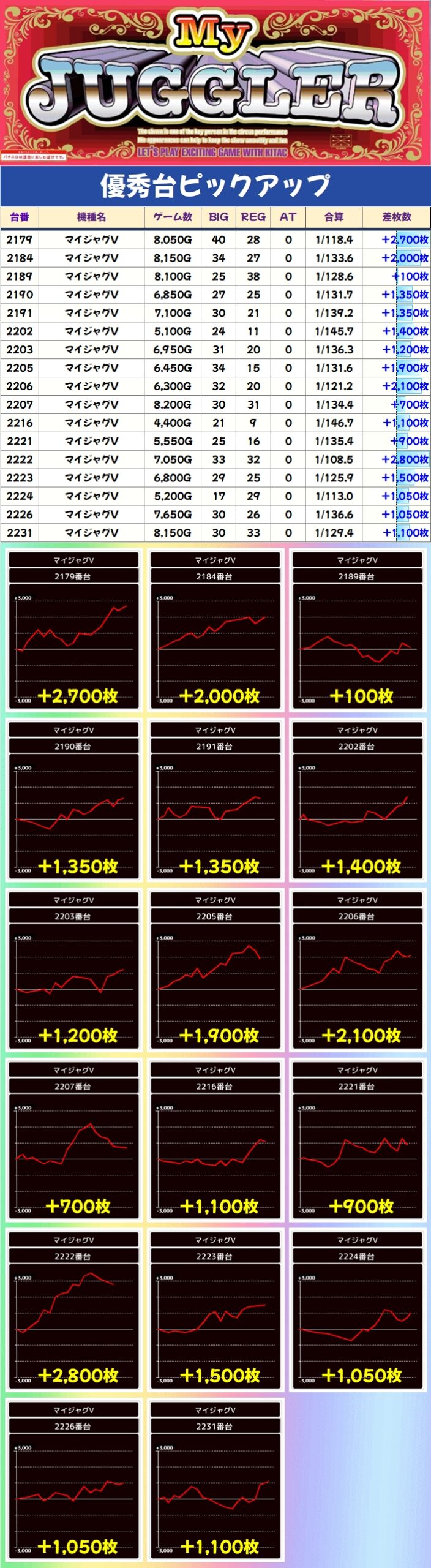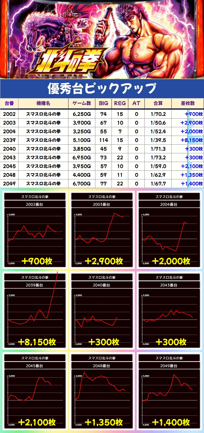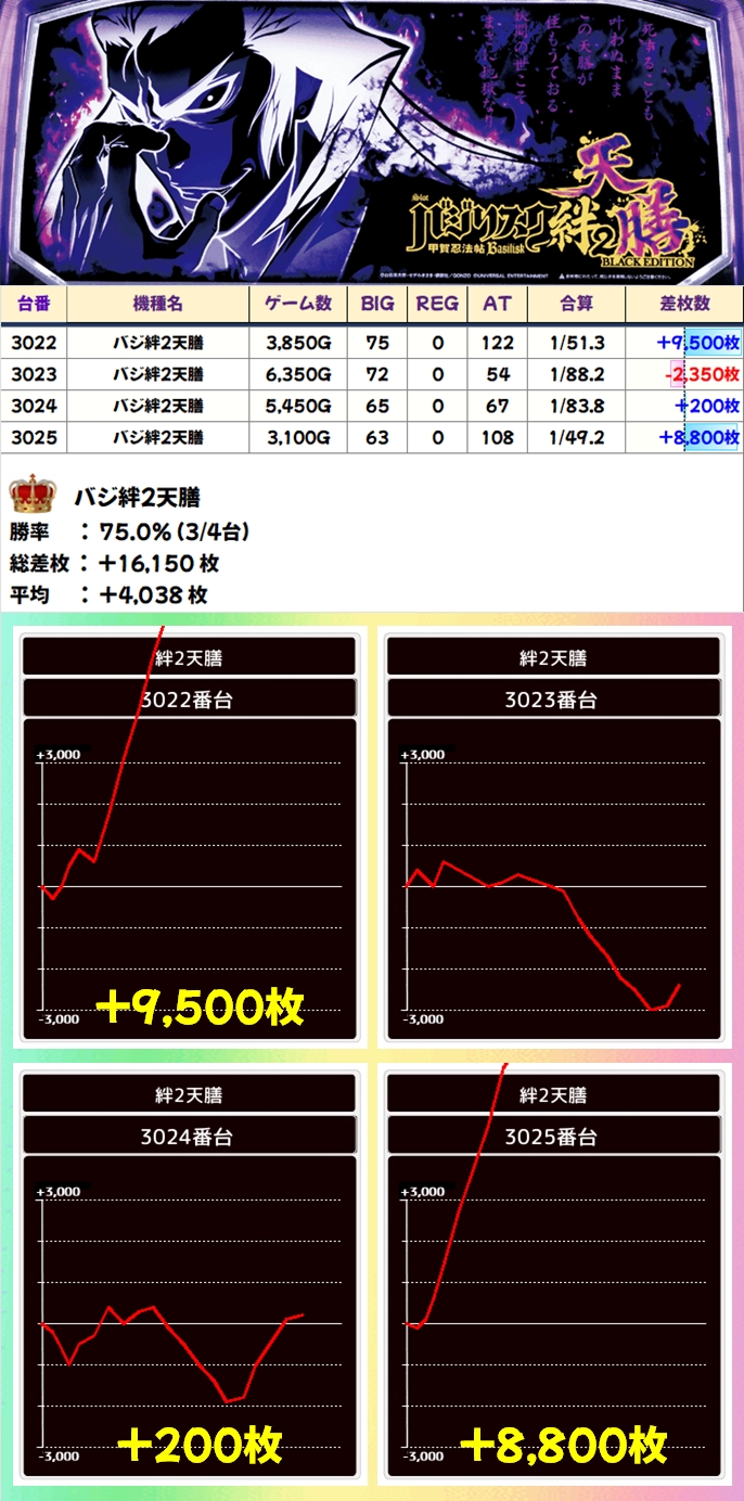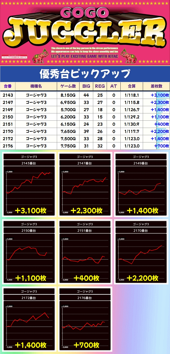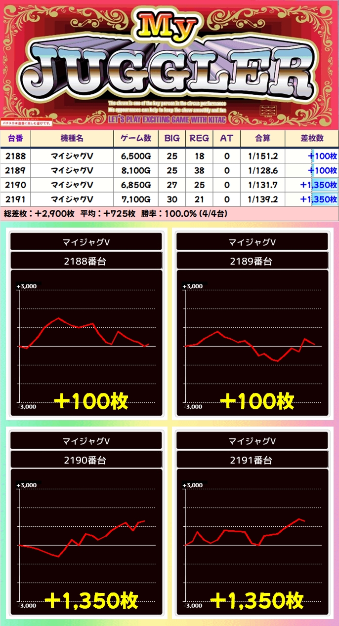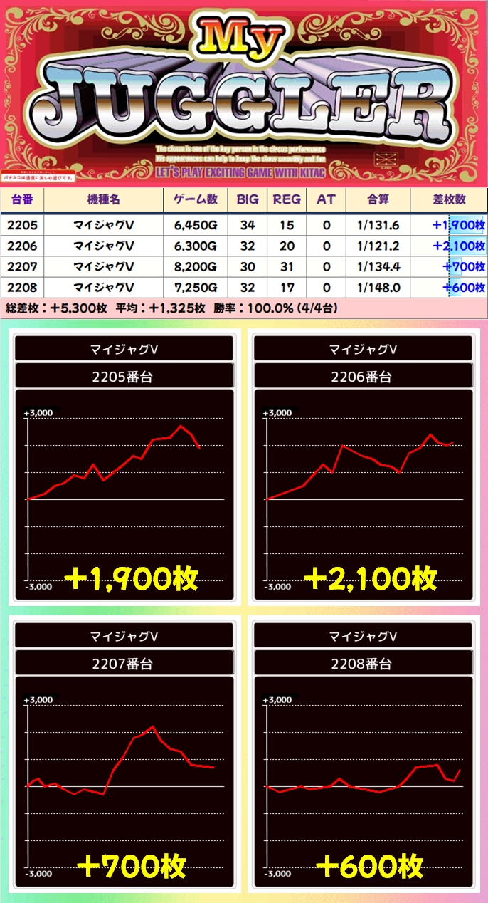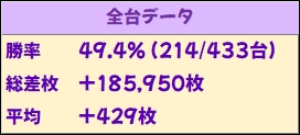 総差枚+18.5万枚、平均+429枚と今回も素晴らしい結果を残してくれました!