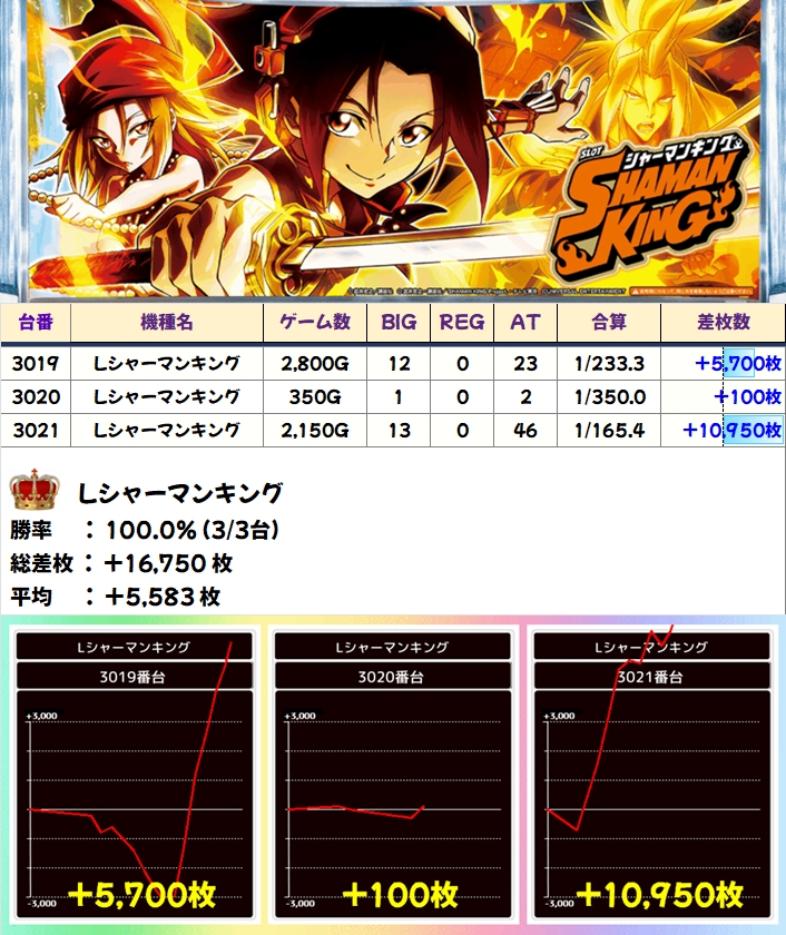【1/2系濃厚】Lシャーマンキング(3/3台+)→平均+5,583枚