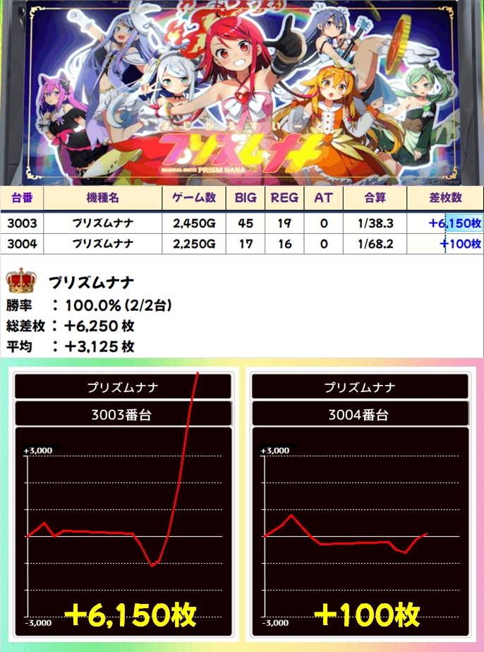 【1/2系濃厚】プリズムナナ(2/2台+)→平均+3,125枚
