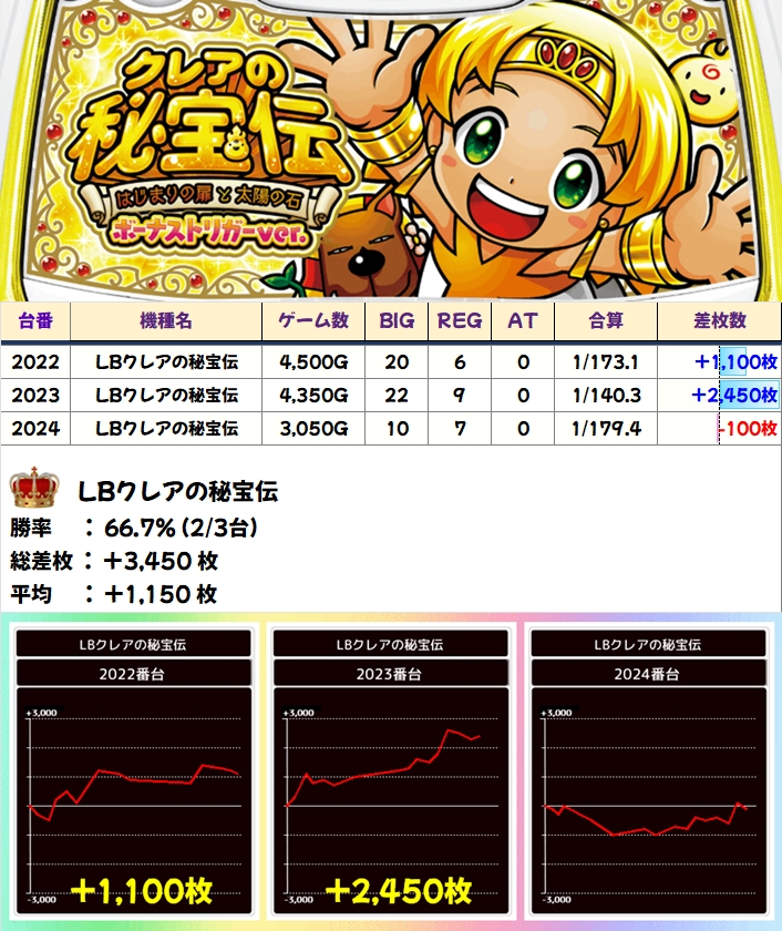 【1/2系濃厚】LBクレアの秘宝伝(2/3台+)→平均+1,150枚